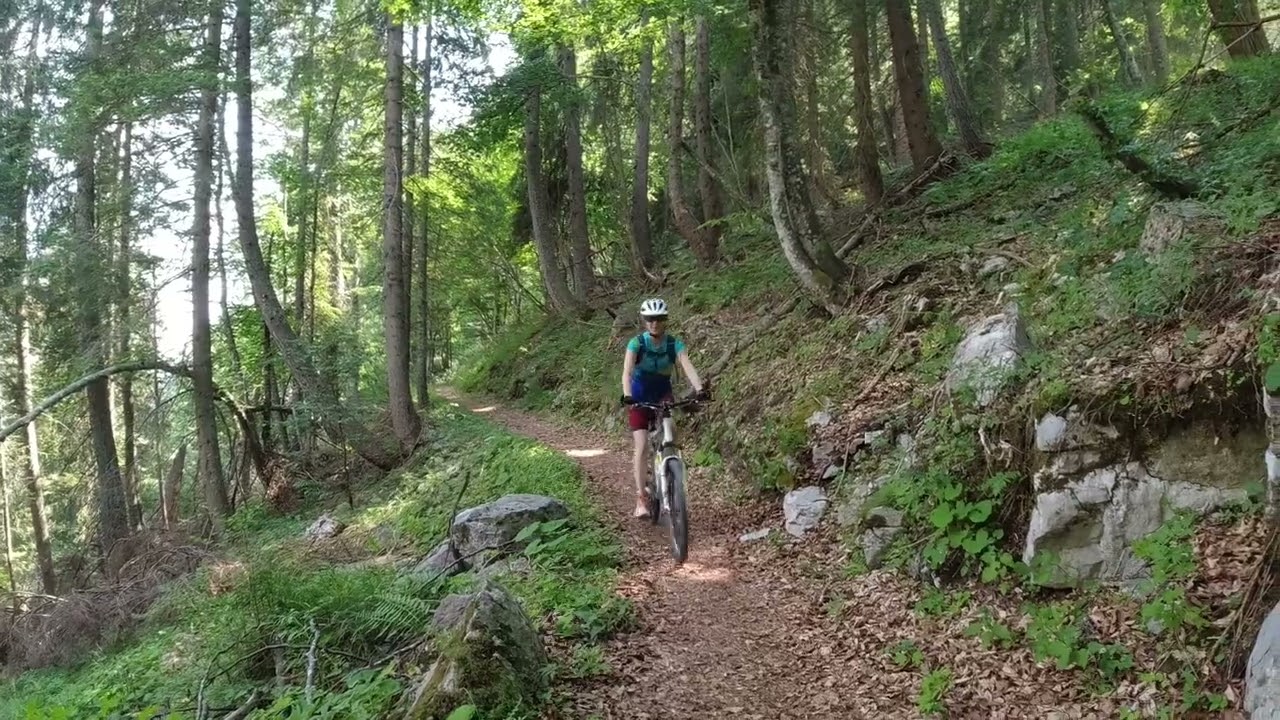 S ťažkým srdcom sa vzdávame vidiny panoramatickej jazdy po vrstevnici. Úvodný zjazd po rozbitej kamenistej lanovkárskej ceste je všetko, len nie príjemný. Jarka miestami radšej ide pešo. Našťastie odbočka nie je ďaleko. Ani lanovkárom odporúčaný chodník síce nie je oficiálna cyklotrasa, ale je takmer celý zjazdný a miestami aj celkom zábavný – pozri video vyššie. Má charakter lesného vrstevnicového single tracku a stretávame na ňom len zopár peších turistov. Pod chatou sa les mení na spásané lúky a my začíname tušiť, že Malga Tratoi bude skôr salaš než horská chata.